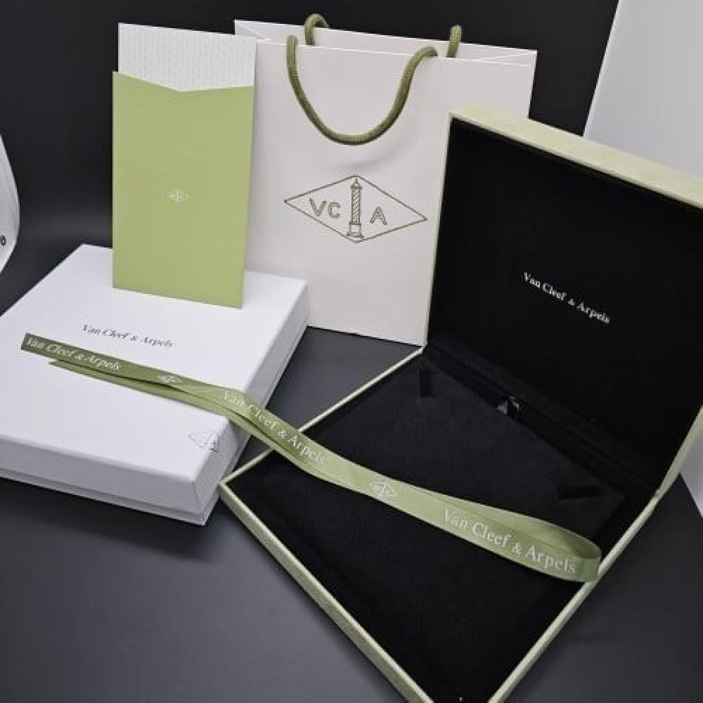 ملحقات فان كليف مكون من 3 قطع علبة + غطاء للعلبه + كيس مناسب للاطقم والحلق مناسبة لتقديمها هدية فاخره لاكسسوارات فان كليف - متوفر جميع ملحقات ...