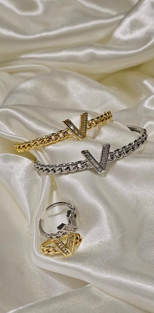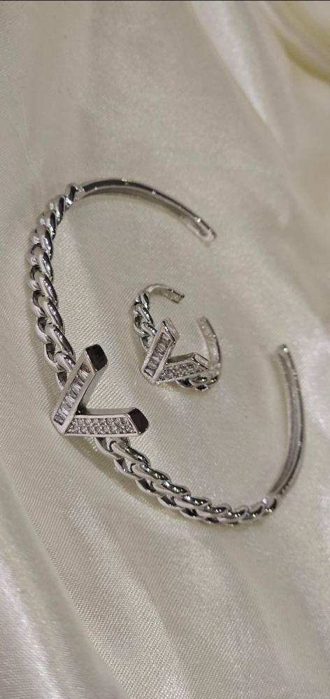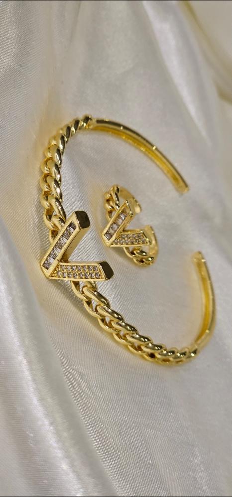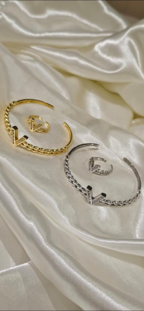 أسورة مطلية ذهب مع خاتم فصوص زيركون مفتوحة تجي على اي مقاس