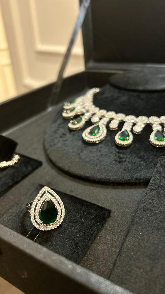 طقم سهرة تصميم دقة ألماس مطلي راديوم تم اضافة عبارة