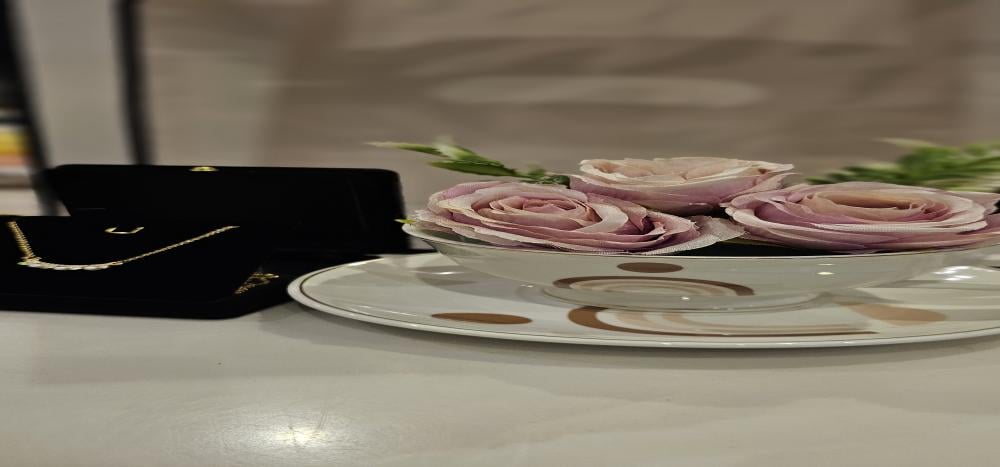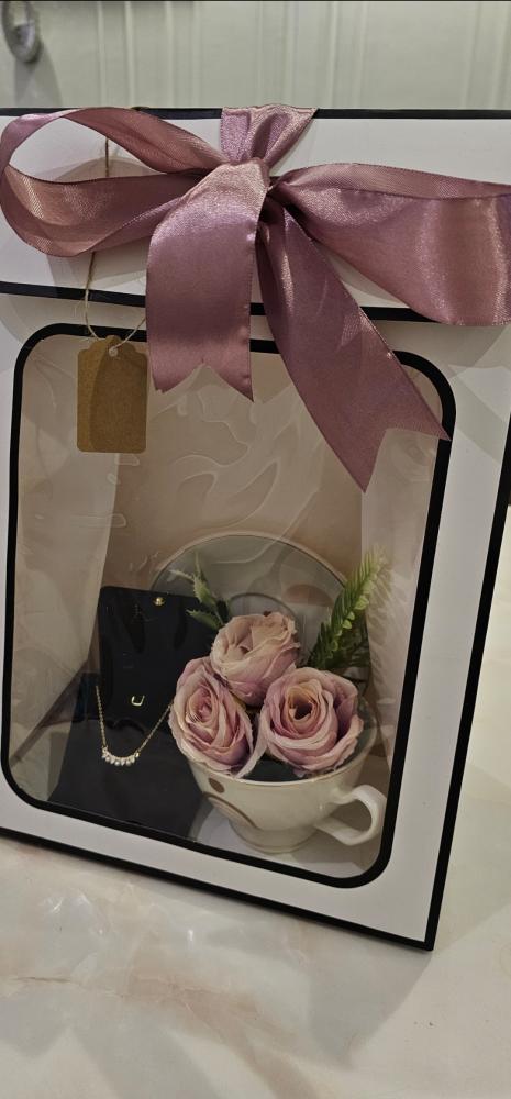 هدية جاهزة كوب مع سلسال مطلي مزين بالورد
