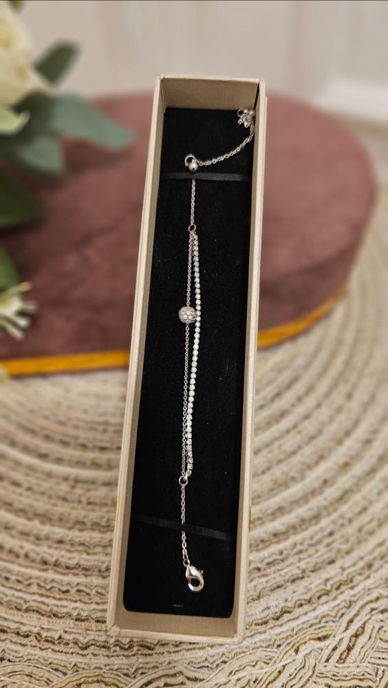 اسورة تنس لون فضي مطلية مزينة بورد صناعي