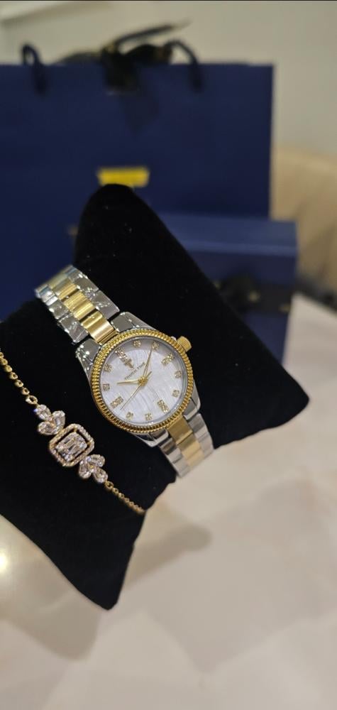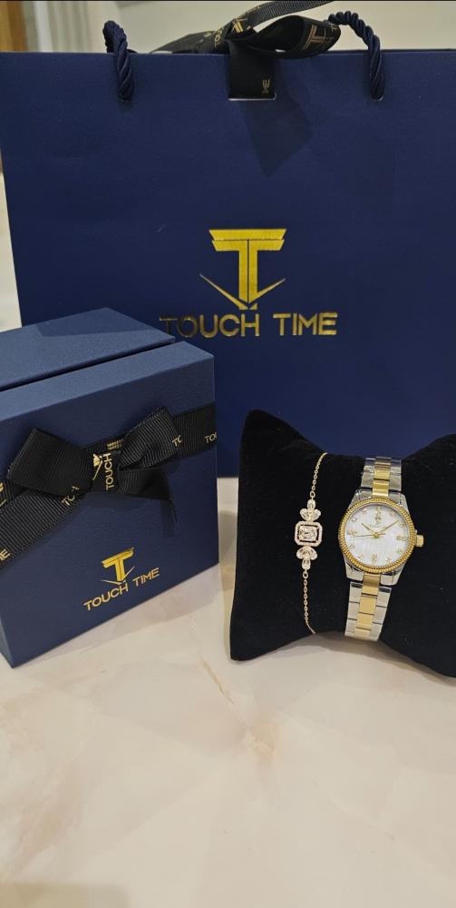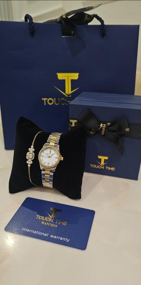 ساعة نسائي ماركة TOUOH TIME مع أساور مطلية ضد الماء ضمان سنة مع بوكس وكيس الماركة