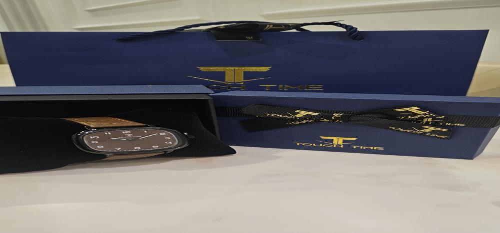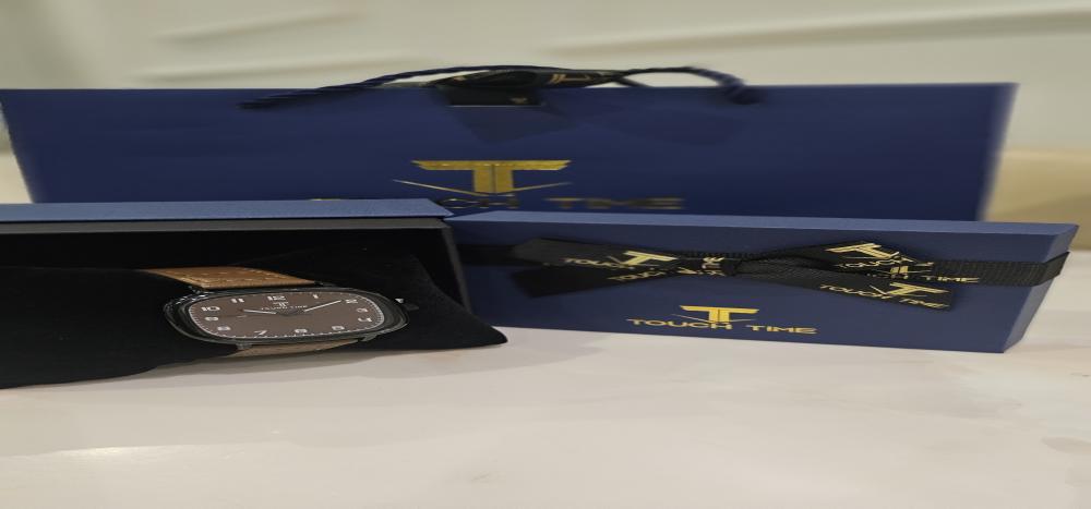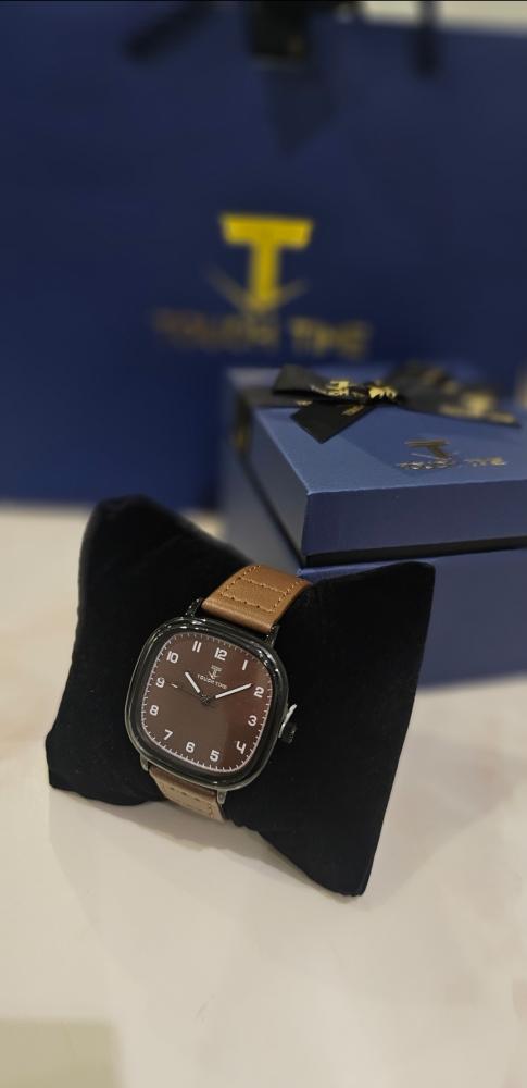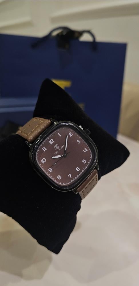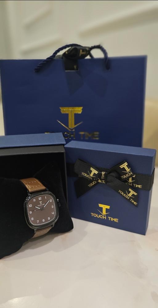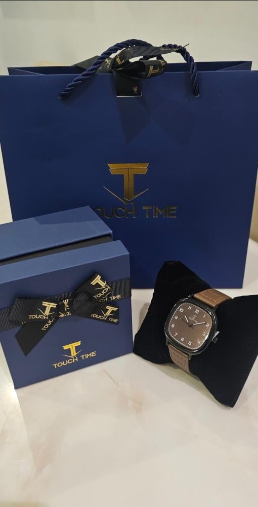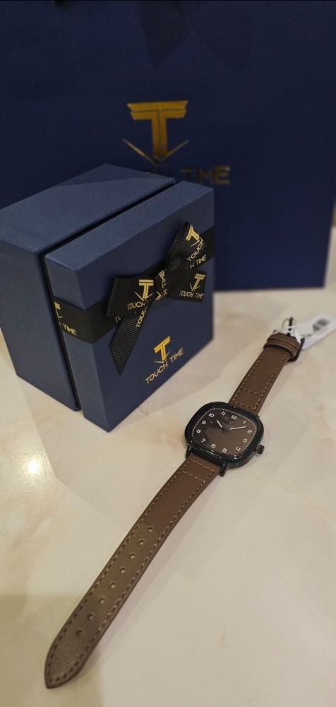 ساعة جلد رجالية ماركة TOUOH TIME ضد الماء ضمان سنة مع بوكس وكيس الماركة